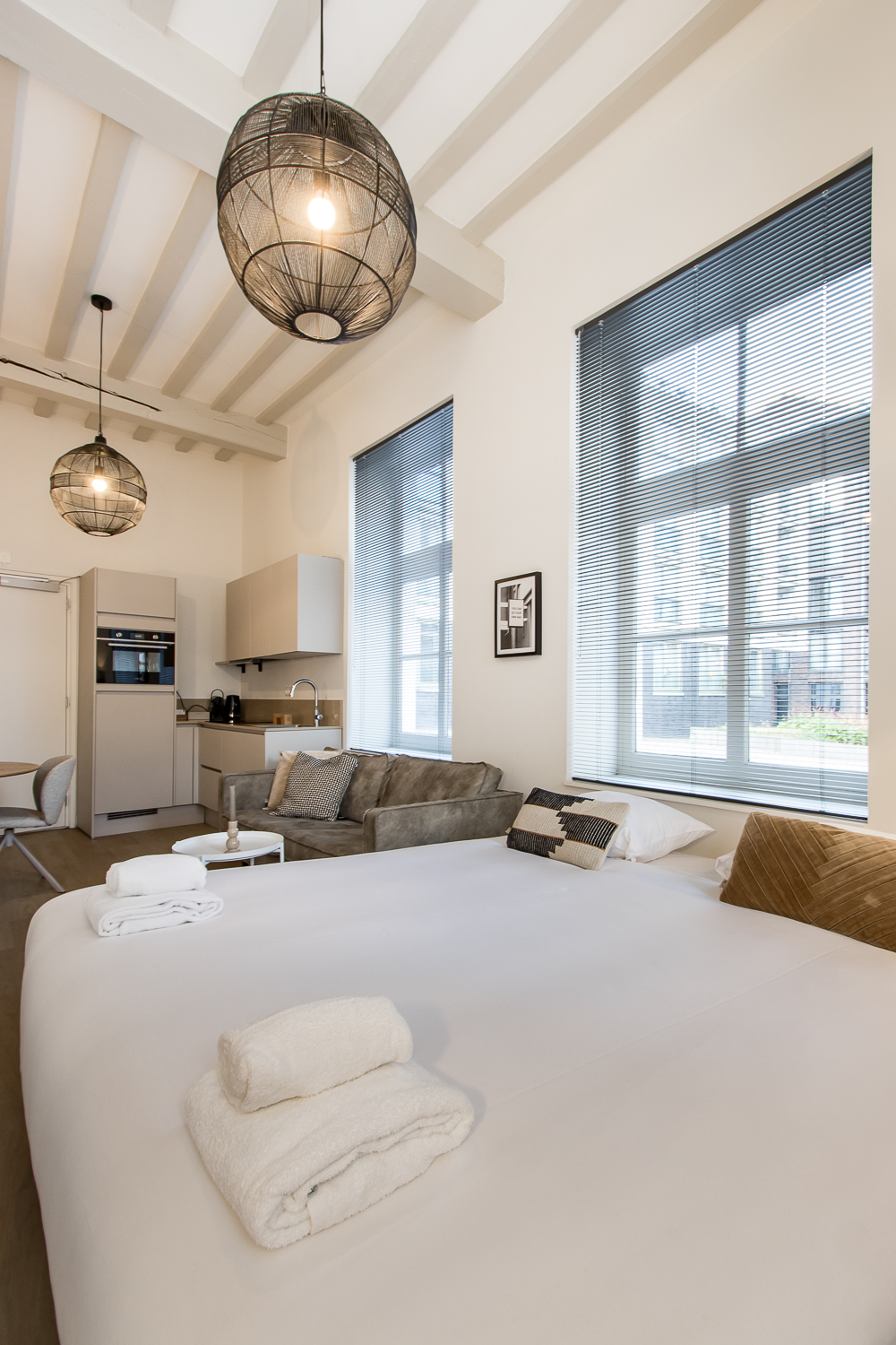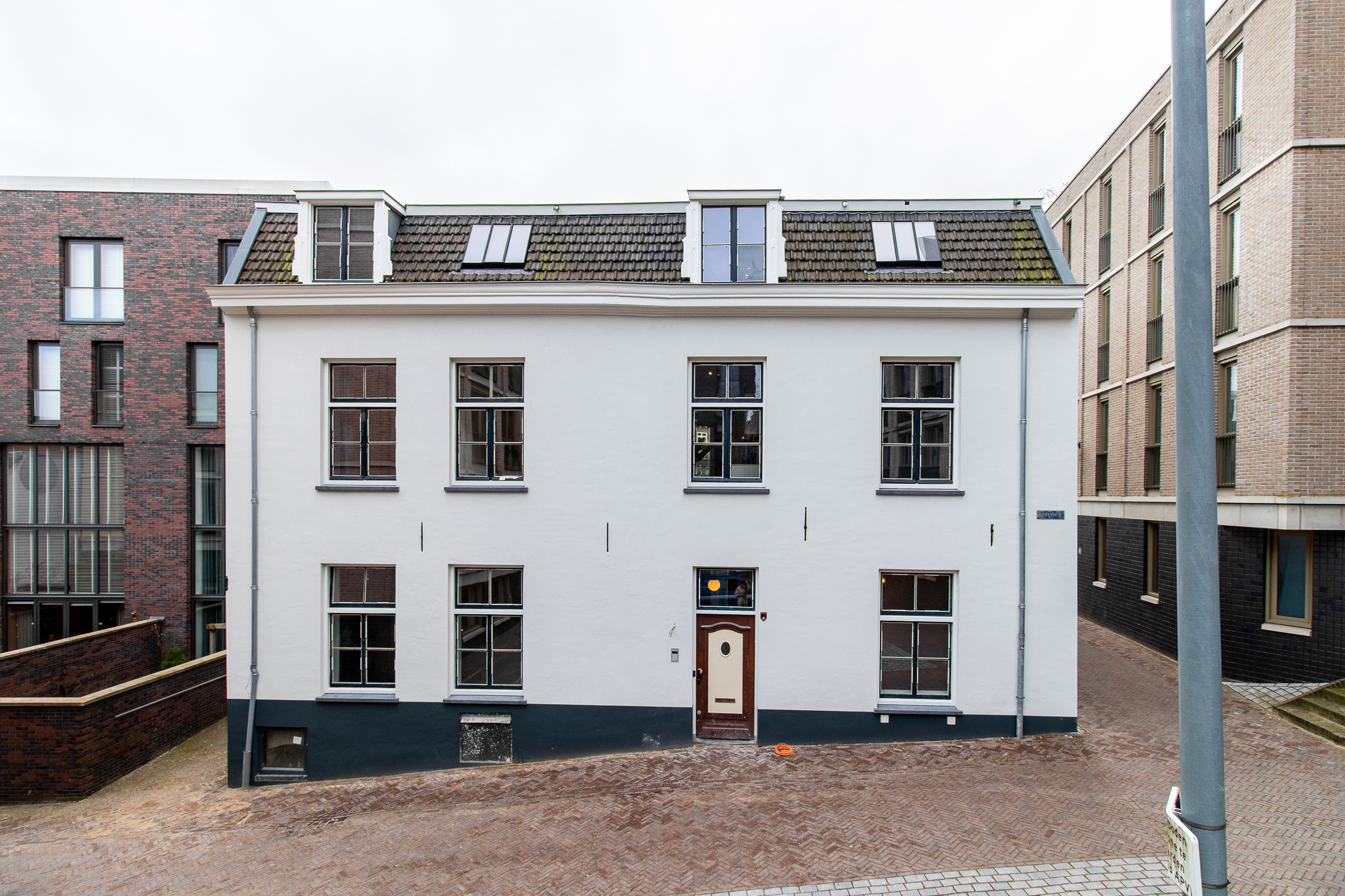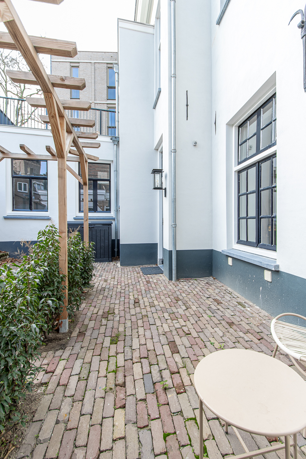 De bestaande kozijnen en buitendeuren van het pand zijn gerenoveerd en gehandhaafd. Hierbij is het bestaande glas vervangen voor vacuümbeglazing. Dit zorgt voor modern comfort binnen de bestaande glassponningen.  Een deel van de bestaande kozijnen is verwijderd, waardoor er meer rust in het gevelbeeld is ontstaan. In de zijgevel is een extra kozijn aangebracht, met een modern stalen kader, voor extra daglichttoetreding.